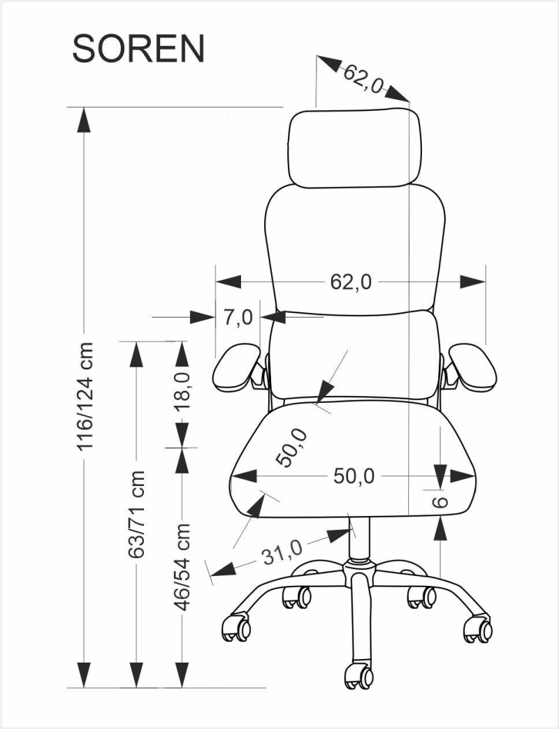 - Wymiary: 62 cm (szerokość) x 62 cm (głębokość) x 116-124 cm (wysokość) z regulacją siedziska od 46 do 54 cm