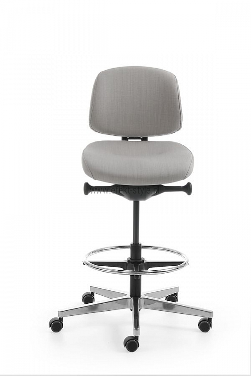 LIFT wyposażony jest w mechanizm synchro. Siedzisko zostało specjalnie wyprofilowane, żeby zapewnić komfort podczas siedzenia, a w pozycji stojącej stabilne podparcie. Wysokość siedziska można regulować w zakresie 200 mm. Dodatkowo krzesło Lift można wyposażyć w ring samozaciskowy, dający podparcie dla nóg w każdej pozycji.