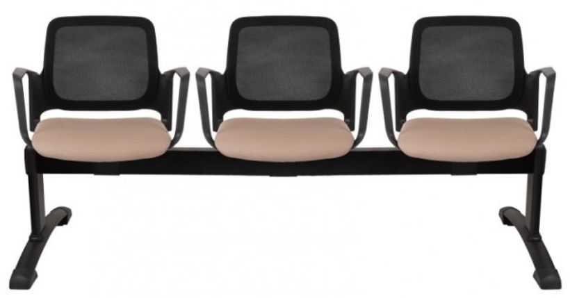 Nowoczesne i modułowe ławki Aspen BS Arm (2, 3, 4-osobowe) z czarnymi kubełkami i przewiewnymi oparciami z siatki Runner. Personalizacja tapicerki siedzisk i wybór koloru stelaża (czarny/szary) sprawiają, że doskonale sprawdzą się w biurach, szkołach i obiektach publicznych.