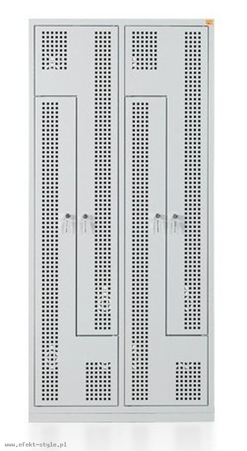 Czterodrzwiowa szafa ubraniowa wyposażona jest w półkę, wieszaki boczne oraz drążek na wieszaki ubraniowe. Drzwi wykonane są w kształcie litery L. Wykonana z blachy czarnej o grubości 0.6 mm - 1 mm, malowana farbami proszkowymi (epoksydowo-poliestrowymi). Każde drzwi zamykane są zamkiem krzywkowym. Całość osadzona na cokole wykonanym z blachy ocynkowanej (malowanej) o grubości 1 mm.