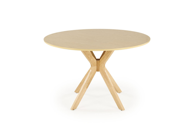 | Stół okrągły NICOLAS to doskonały wybór dla osób, które pragną wprowadzić do swojego wnętrza odrobinę elegancji i naturalnego uroku. Dzięki średnicy 120 cm i wysokości 77 cm, stół idealnie wkomponuje się w przestrzenie zarówno małe, jak i większe, tworząc przytulne miejsce do spotkań z rodziną i przyjaciółmi. Wykonany z wysokiej jakości MDF z okleiną naturalną i drewna litego, zapewnia nie tylko estetyczny wygląd, ale także trwałość, która przetrwa wiele lat użytkowania. Kolor dąb naturalny wprowadza ciepło do każdego pomieszczenia, a jego uniwersalny charakter sprawia, że świetnie współgra z różnymi stylami aranżacji – od skandynawskiego po nowoczesny. Szczególną uwagę zwraca nowoczesna forma stołu, z charakterystycznymi nogami, które nie tylko zapewniają stabilność, ale również dodają lekkości i świeżości całej konstrukcji. NICOLAS to nie tylko estetyka, ale i funkcjonalność. Okrągły kształt stołu sprzyja swobodzie ruchu przy stole oraz umożliwia łatwe rozmieszczenie krzeseł, co czyni go idealnym miejscem na rodzinne obiady czy towarzyskie spotkania. Powierzchnia stołu jest łatwa do utrzymania w czystości, co czyni go wygodnym rozwiązaniem w każdym domu. - Wymiary: Ø120/77 cm