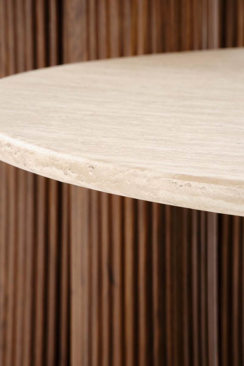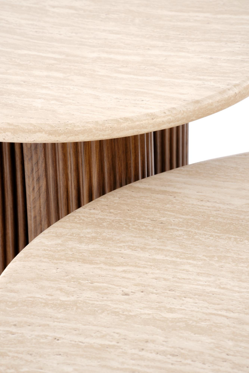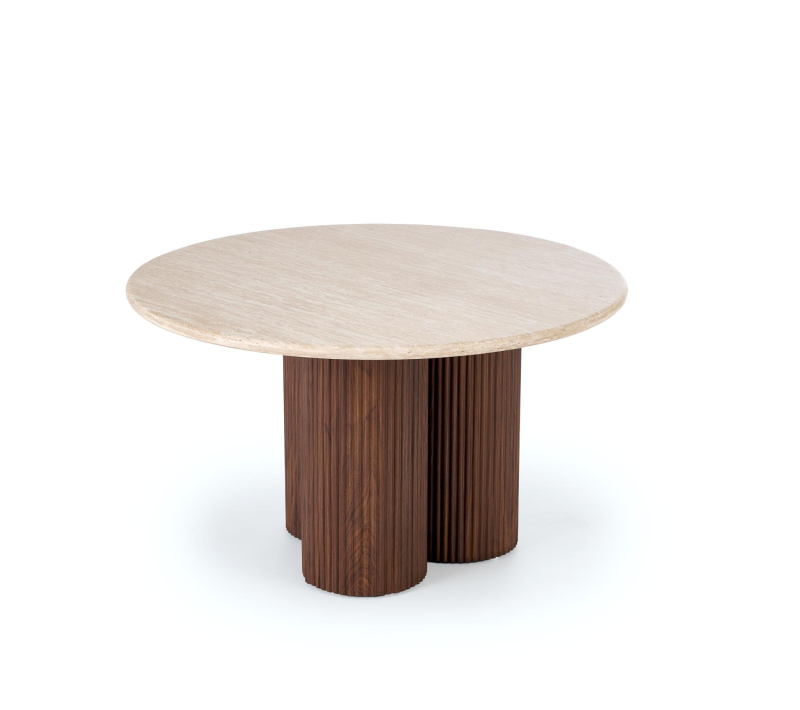 | Odkryj elegancję i nowoczesny design z ławą DOROTEA, która perfekcyjnie łączy funkcjonalność z estetyką. Jej okrągły kształt i harmonijne proporcje sprawiają, że idealnie komponuje się w różnych aranżacjach wnętrz, od minimalistycznych po klasyczne. Idealna do salonu, zrobi wrażenie na Twoich gościach, dodając przytulności i stylu. Wykonana z wysokiej jakości MDF okleinowanego, ława DOROTEA łączy elegancję koloru orzechowego z modnym wykończeniem w odcieniu trawertynu. Jej solidna konstrukcja zapewnia trwałość, a przyjemna faktura sprawia, że korzystanie z niej to czysta przyjemność. - Średnica: 80 cm