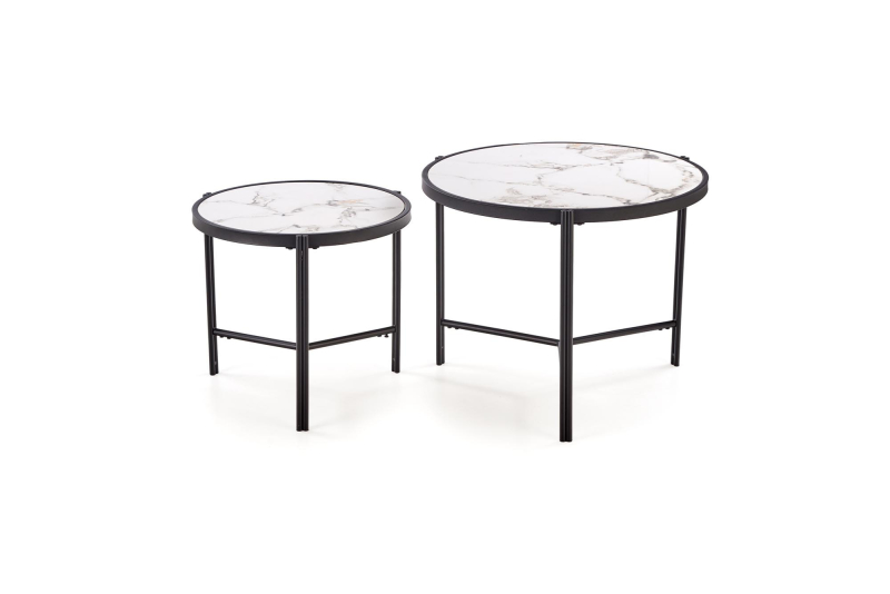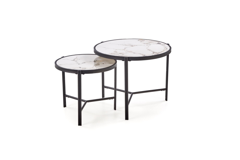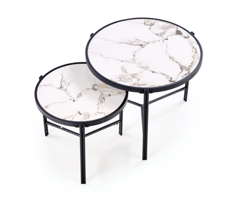 | Zapraszamy do odkrycia zestawu FATIMA – eleganckich ław, które łączą w sobie nowoczesny styl z funkcjonalnością. Doskonałe do każdego wnętrza, te ławy w kolorze białego marmuru i czarnego wykończenia przyciągają wzrok i dodają klasy każdemu pomieszczeniu. Idealne do salonu, sypialni czy przestrzeni biurowej, zapewnią nie tylko estetykę, ale i użyteczność. - Wymiary: większa ława 63 cm (średnica) x 50 cm (wysokość), mniejsza ława 48 cm (średnica) x 43 cm (wysokość)