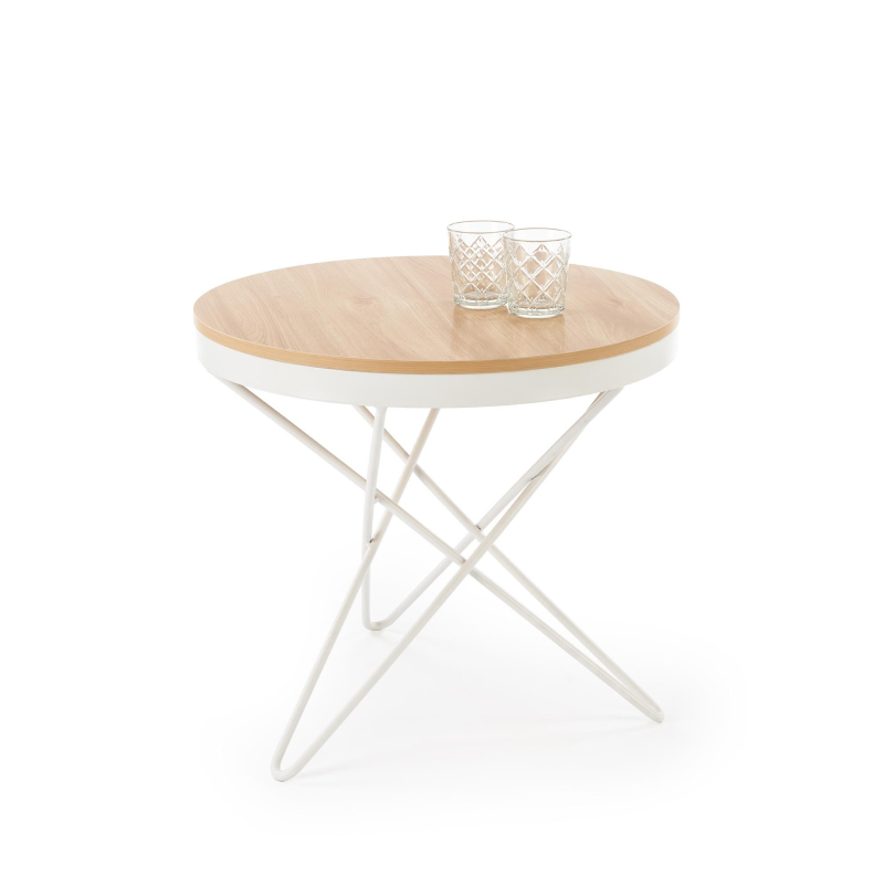 Wymiary (średnica/wys.): Ø60 cm / 55 cm – kompaktowe i praktyczne wymiary, które idealnie sprawdzą się jako stolik kawowy, pomocniczy lub boczny, zapewniając komfortowe miejsce na napoje, książki czy dekoracje. -