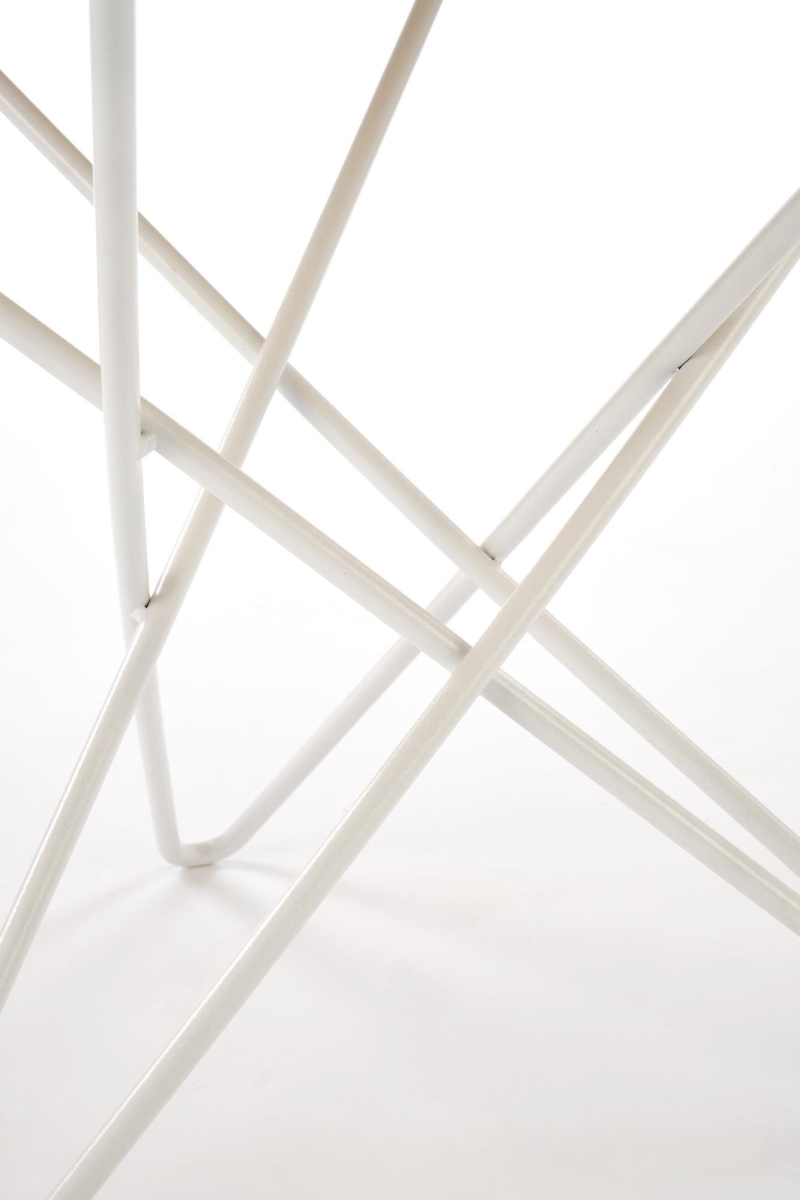 Stelaż/Nogi: Solidna stal malowana proszkowo w kolorze białym. Specjalnie zaprojektowana, geometryczna podstawa z prętów nie tylko gwarantuje stabilność, ale także dodaje ławie nowoczesnego i lekkiego charakteru. -