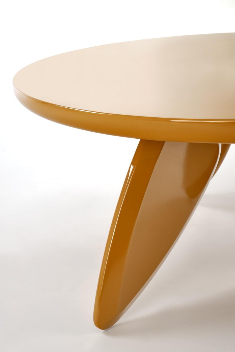Design: Okrągły blat w połączeniu z charakterystycznymi, zaokrąglonymi nogami nadaje ławie lekkości i organicznego charakteru. Prosta, a zarazem oryginalna konstrukcja sprawia, że ława SORAYA 2 jest nie tylko praktycznym meblem, ale i centralnym punktem dekoracyjnym salonu. Dane techniczne: -