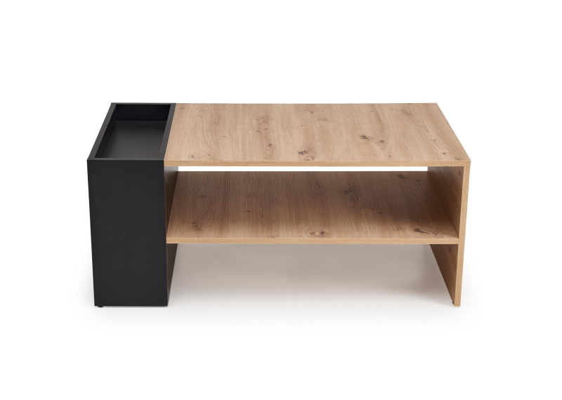 Praktyczne przechowywanie: Ława wyposażona jest w otwarte półki oraz wnękę, które idealnie nadają się do przechowywania pilotów, książek, magazynów czy dekoracyjnych drobiazgów, pomagając utrzymać porządek w salonie. -