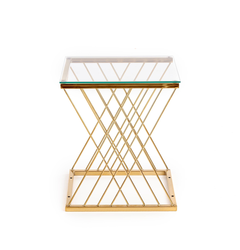 | Ława NANCY to elegancki dodatek, który wprowadzi styl i szyk do każdego wnętrza. Jej zjawiskowy design łączy w sobie nowoczesne materiały oraz wyjątkowy styl, co sprawia, że doskonale sprawdzi się w przestrzeniach urządzonych w trendzie glamour czy minimalistycznym. Zastosowanie złotego wykończenia w połączeniu z transparentnym szkłem dodaje ławie lekkości, czyniąc ją idealnym elementem zarówno w salonie, jak i w sypialni. - Wymiary: 45 cm (szer.) / 39 cm (głęb.) / 52 cm (wys.)