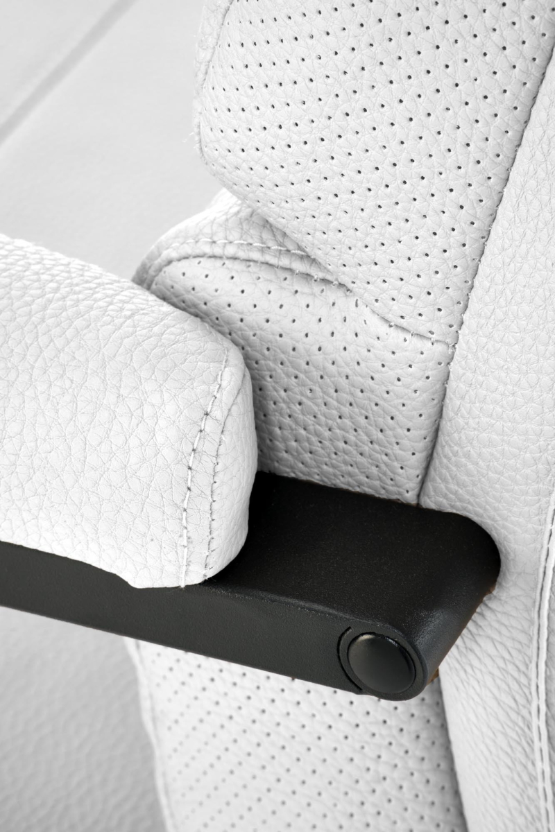 • Posiadanie mechanizmu synchronicznego – jak już wspominaliśmy wcześniej, zapewnia nie tylko wygodę i komfort, ale też w dalszej perspektywie ogranicza szanse na problemy zdrowotne związane z kręgosłupem. Dzięki temu mechanizmowi siedzisko po zwolnieniu blokady dostosowuje się do pleców (śledzi ruch naszego ciała).
