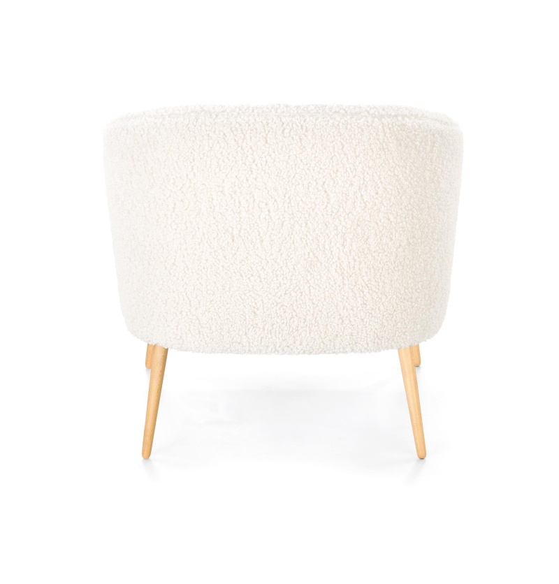 - Materiał: Tkanina bouclé na siedzisku zapewnia niezwykłą miękkość i cudowny komfort, a solidne nogi z litego drewna gwarantują trwałość i stabilność