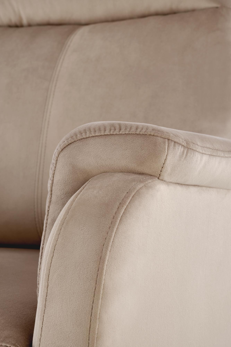 Fotel Wypoczynkowy CROCUS z Elektryczną Funkcją Rozkładania - Luksusowy Komfort w Zasięgu Ręki (Opcja Dostawy z Wniesieniem) Przedstawiamy fotel wypoczynkowy CROCUS, który zapewni Ci wyjątkowy komfort i relaks po każdym dniu. Ten elegancki fotel, obity miękką i przyjemną w dotyku tkaniną velvet BLUVEL w subtelnym, beżowym odcieniu, łączy w sobie nowoczesną funkcjonalność z klasycznym designem. Dzięki elektrycznej funkcji rozkładania, z łatwością znajdziesz idealną pozycję do wypoczynku. Elektryczne Rozkładanie dla Maksymalnej Wygody Zapomnij o ręcznym rozkładaniu! Fotel CROCUS wyposażony jest w intuicyjny panel sterowania umieszczony z boku, który umożliwia płynne i ciche rozłożenie oparcia oraz wysunięcie podnóżka. Jednym dotknięciem możesz przejść z pozycji siedzącej do półleżącej lub leżącej, idealnej do oglądania telewizji, czytania książki lub po prostu błogiego relaksu. Wyjątkowy Komfort i Eleganckie Wykończenie Miękka tapicerka z tkaniny velvet BLUVEL nie tylko wspaniale wygląda, ale również jest niezwykle przyjemna w dotyku, zapewniając dodatkowy komfort podczas wypoczynku. Ergonomicznie zaprojektowane oparcie, wygodne siedzisko i miękkie podłokietniki gwarantują optymalne podparcie dla Twojego ciała. Wymiary (szerokość / długość po rozłożeniu / wysokość oparcia / wysokość całkowita / wysokość siedziska) (z dokładnością +/- 1-2%): Cechy Produktu: -