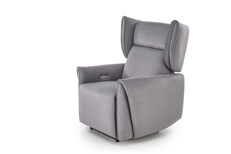 Fotel Wypoczynkowy GELATO z Elektryczną Funkcją Rozkładania - Komfort i Relaks na Wyciągnięcie Ręki w Popielatym Odcieniu Przedstawiamy fotel wypoczynkowy GELATO, idealne rozwiązanie dla osób ceniących sobie wygodę i funkcjonalność. Ten elegancki fotel, obity miękką tkaniną w modnym popielatym odcieniu, został zaprojektowany z myślą o Twoim maksymalnym relaksie. Dzięki elektrycznej funkcji rozkładania, jednym dotknięciem zmienisz go w komfortową leżankę, idealną do odpoczynku po długim dniu. Elektryczne Rozkładanie dla Pełnego Komfortu Fotel GELATO wyposażony jest w intuicyjny panel sterowania umieszczony z boku, który umożliwia płynne i ciche rozłożenie oparcia oraz wysunięcie podnóżka. Bez wysiłku znajdziesz idealną pozycję do oglądania telewizji, czytania książki lub po prostu błogiego lenistwa. Elektryczny mechanizm zapewnia łagodną zmianę pozycji, gwarantując maksymalny komfort użytkowania. Ergonomiczny Design i Przyjemny Materiał w Popielatym Kolorze Wysokie oparcie z charakterystycznymi "uszami" zapewnia doskonałe podparcie dla głowy i szyi, a miękkie siedzisko i wygodne podłokietniki gwarantują komfort siedzenia. Tapicerka z przyjemnej w dotyku tkaniny w stylowym popielatym kolorze sprawia, że fotel doskonale wkomponuje się w nowoczesne i klasyczne wnętrza. Wymiary (szerokość / długość po rozłożeniu / wysokość oparcia / wysokość całkowita / wysokość siedziska) (z dokładnością +/- 1-2%): Cechy Produktu: -