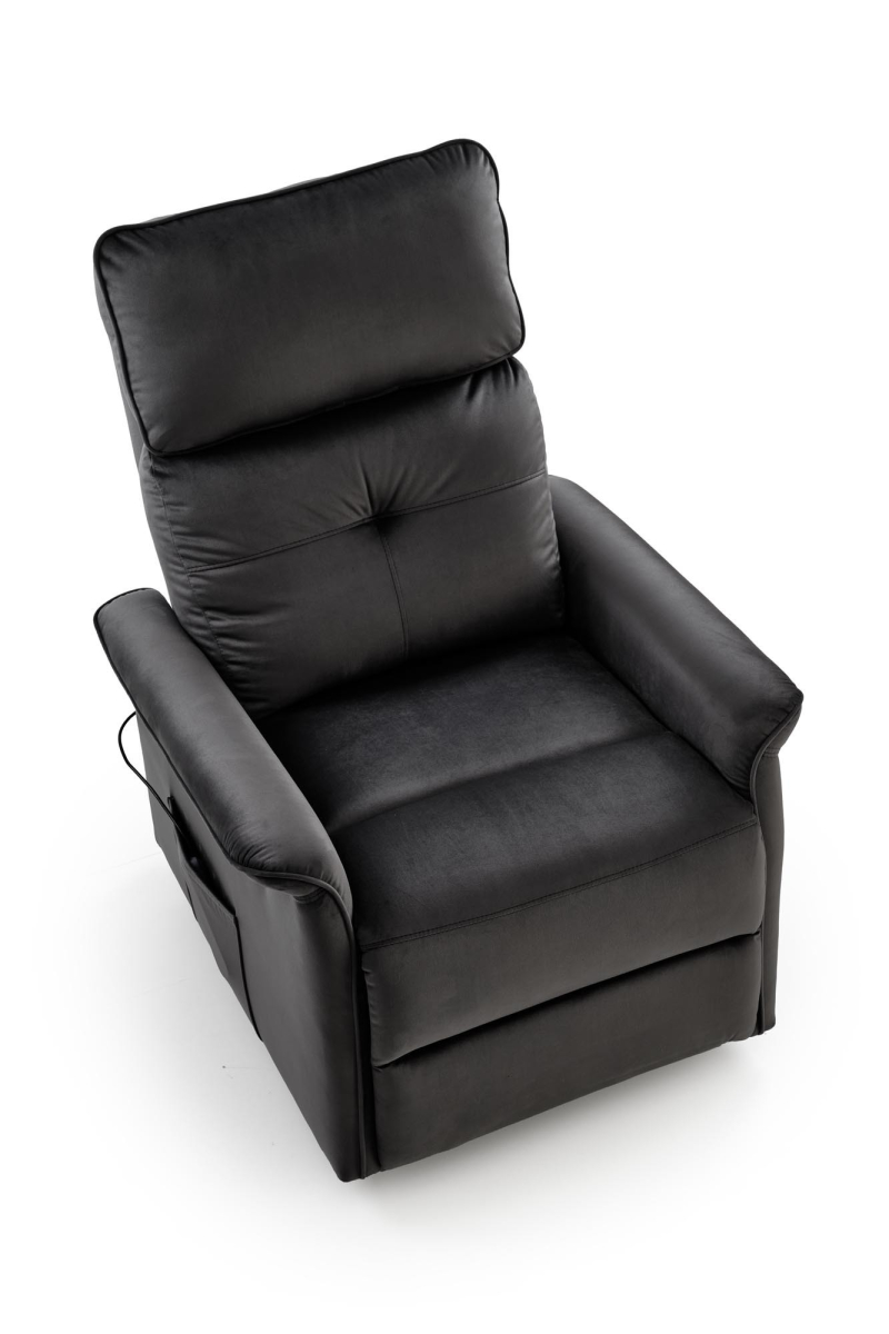 Luksusowa Tapicerka: Miękka i przyjemna w dotyku tkanina velvet - BLUVEL w eleganckim, czarnym kolorze dodaje fotelowi wyrafinowania i zapewnia wyjątkowy komfort. -