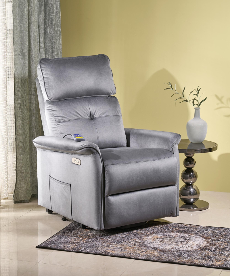 Funkcja Pionizacji: Wstawanie i siadanie nigdy nie było łatwiejsze! Funkcja pionizacji delikatnie podnosi i przechyla fotel, zapewniając wsparcie i bezpieczeństwo, szczególnie dla osób starszych lub z ograniczoną mobilnością. -