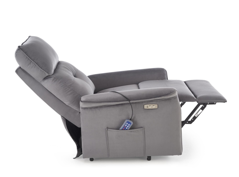 Elektryczne Rozkładanie: Zapomnij o manualnym rozkładaniu! Wystarczy użyć intuicyjnego panelu sterowania, aby płynnie i cicho rozłożyć oparcie i wysunąć podnóżek. Znajdź idealną pozycję do oglądania telewizji, czytania książki lub po prostu błogiego lenistwa. -