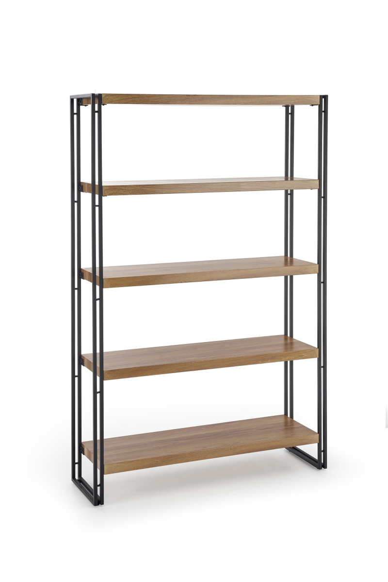Wykonany z MDF okleinowanego, regał emanuje elegancją dzięki wykończeniu w kolorze dębu złotego, które w połączeniu z malowaną proszkowo stalą w kolorze czarnym nadaje mu nowoczesny, industrialny charakter. Półki oferują dużą przestrzeń na książki, dekoracje czy inne przedmioty, umożliwiając jednocześnie łatwe zorganizowanie i wyeksponowanie ulubionych akcesoriów.