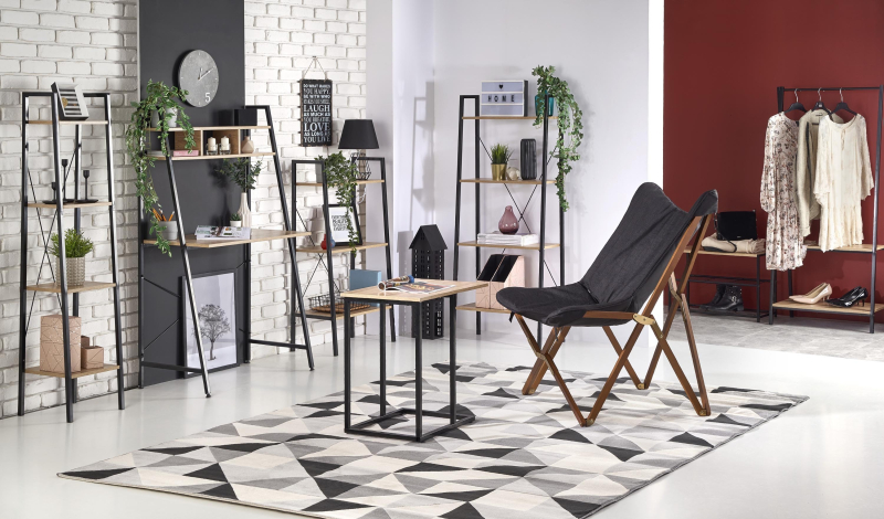 - Materiał: Płyta meblowa laminowana oraz stal malowana proszkowo, co gwarantuje trwałość i odporność na uszkodzenia.