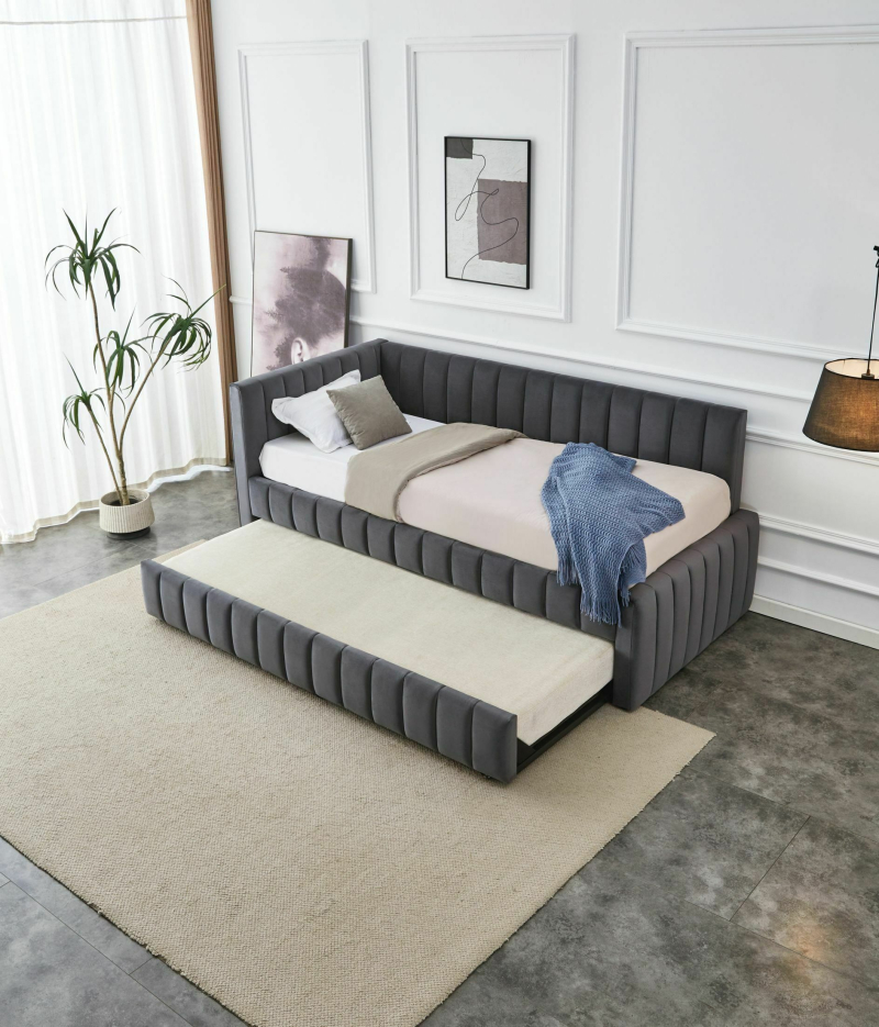 DERBY łóżko z wysuwanym dolnym materacem, popielaty