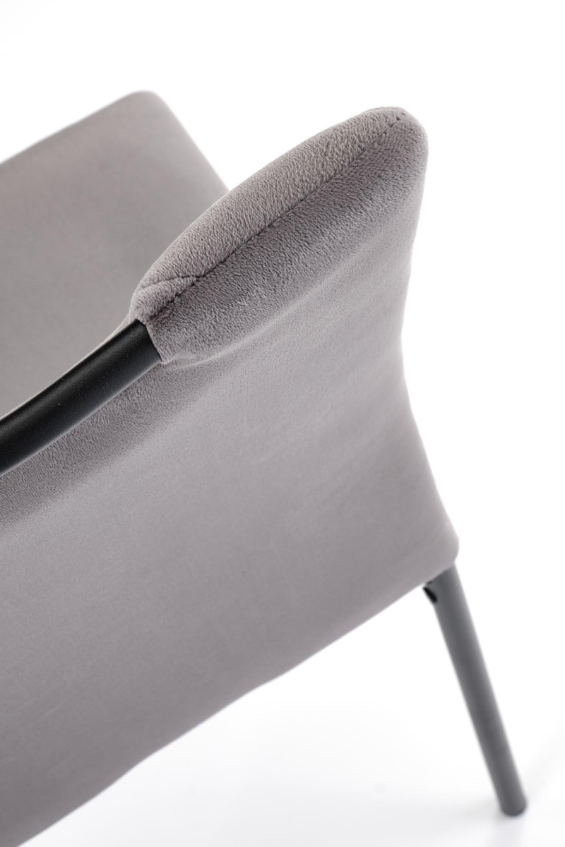 Wygodna tapicerka: Siedzisko i oparcie są tapicerowane gładką, miękką w dotyku tkaniną w kolorze popielatym, zapewniając komfort siedzenia. -