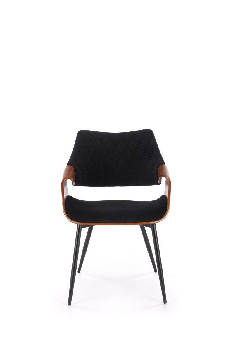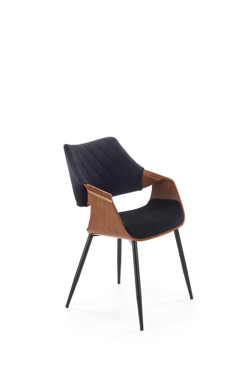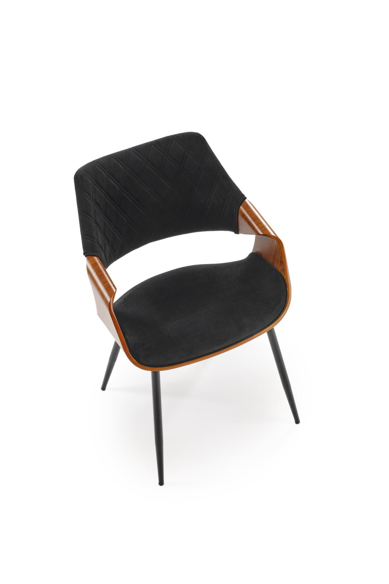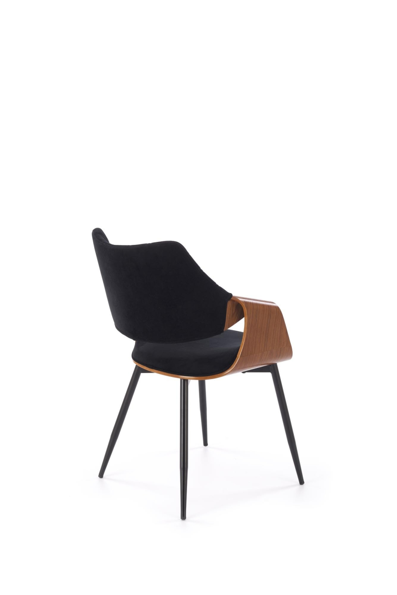 Kontrastowe Kolory: Połączenie czerni i orzecha tworzy elegancki i wyrazisty kontrast, który dodaje krzesłu charakteru. Dane Techniczne: -