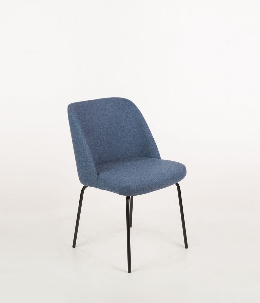 Nowoczesne krzesło tapicerowane obustronnie na stelażu stalowym.