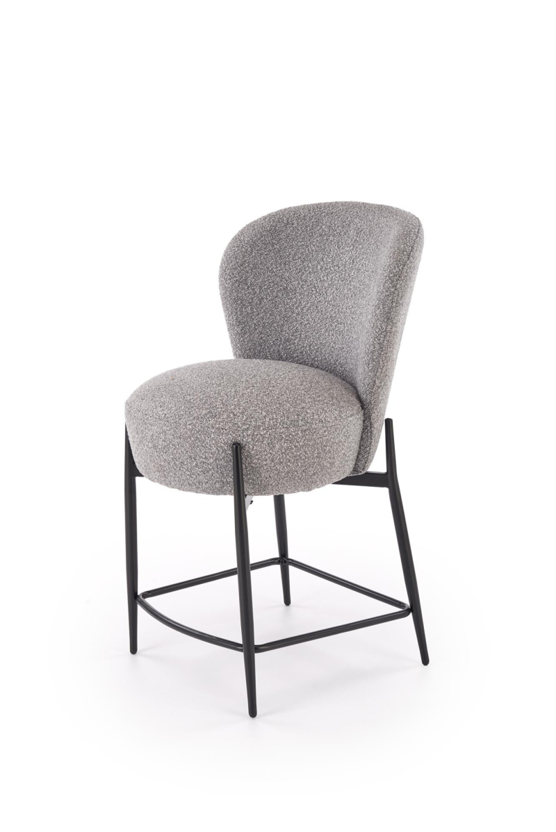 Ten elegancki hoker barowy łączy w sobie komfort siedzenia z nowoczesnym designem. Jego zaokrąglone oparcie i miękkie, teksturowane obicie w modnym popielatym kolorze zapewniają wygodę siedzenia przy wyższych blatach, a smukłe, metalowe nóżki dodają lekkości i nowoczesnego charakteru. Idealny do kuchni z wyspą, baru domowego lub przestrzeni komercyjnych.