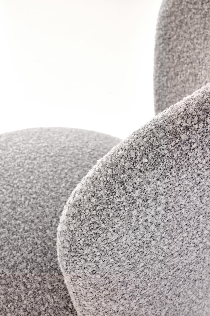 • Komfortowe siedzisko i oparcie: Szerokie, zaokrąglone siedzisko i wyprofilowane oparcie zapewniają optymalne wsparcie podczas siedzenia. Przyjemna w dotyku tkanina w popielatym kolorze obicia dodaje elegancji i nowoczesności.