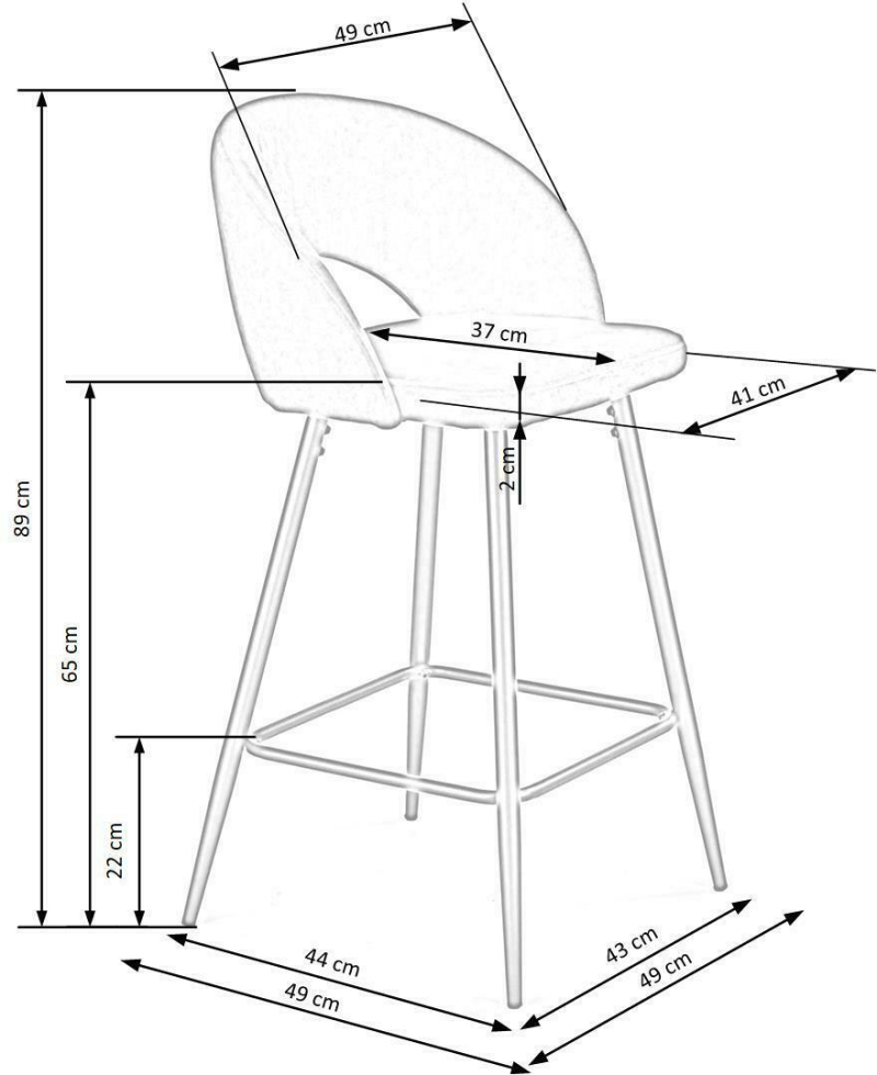 Wymiary: 48 cm (szerokość) / 49 cm (głębokość) / 89 cm (wysokość całkowita) / 65 cm (wysokość siedziska) -