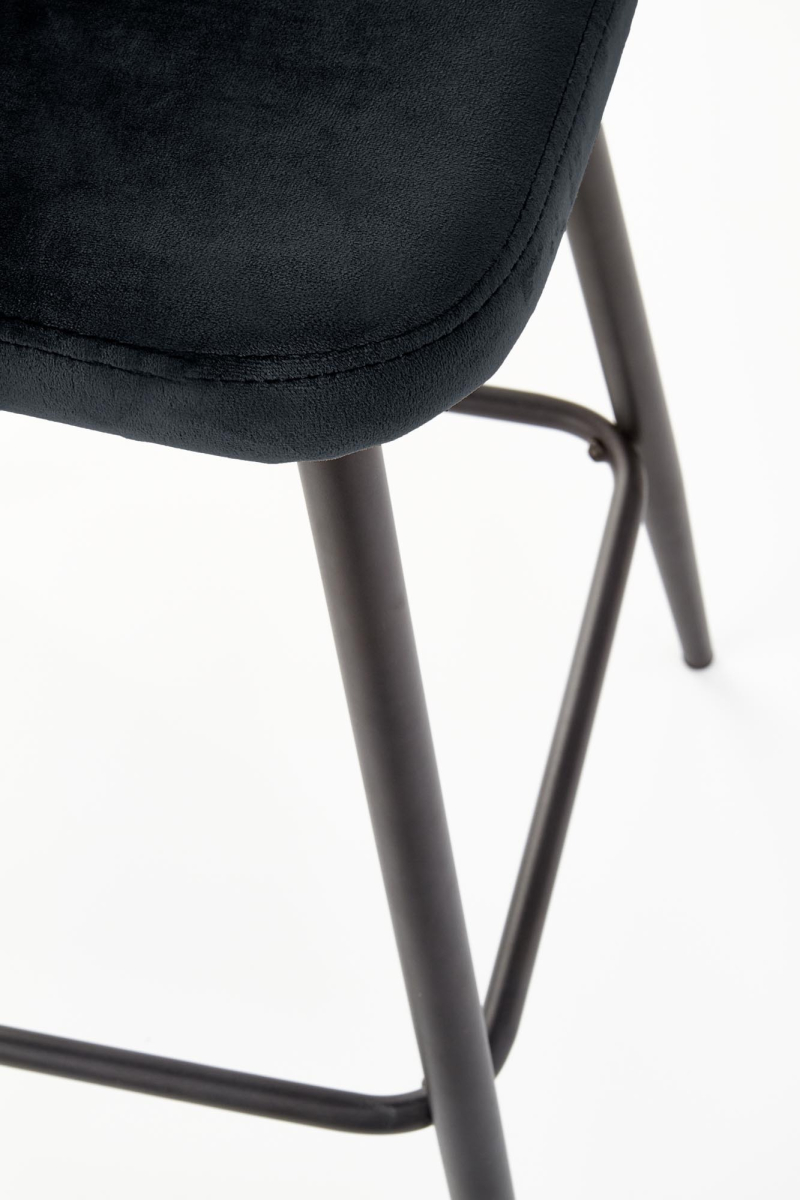 Stabilna konstrukcja: Smukłe, ale wytrzymałe nogi wykonane z malowanej proszkowo stali w kolorze czarnym zapewniają stabilność i trwałość hokera. Dodatkowy wspornik między nogami pełni funkcję praktycznego podnóżka. -