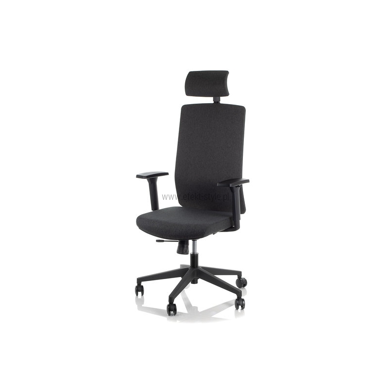 Fotel obrotowy biurowy z regulacją wysokości siedziska, mechanizmem synchronicznym, regulowanymi podłokietnikami oraz wysuwem siedziska.