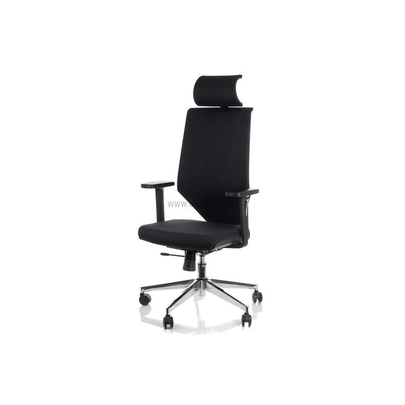 Fotel obrotowy biurowy z regulacją wysokości siedziska, mechanizmem synchronicznym, regulowanymi podłokietnikami oraz wysuwem siedziska.