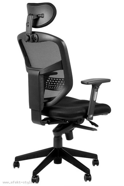 Fotel biurowy obrotowy z regulowanym zagłówkiem oraz z wysuwem siedziska.