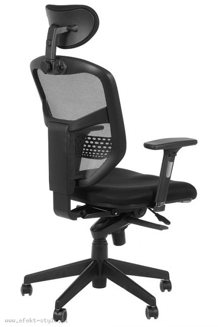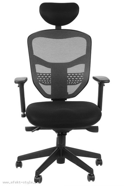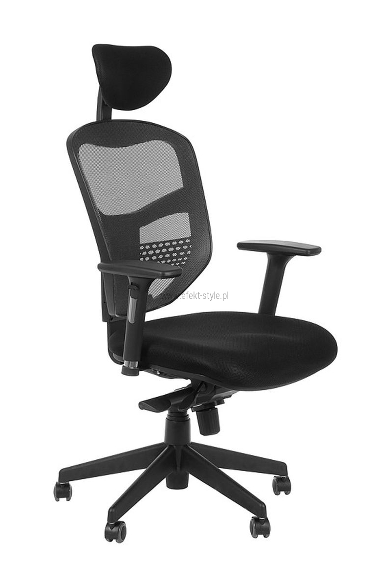 Fotel biurowy obrotowy z regulowanym zagłówkiem oraz z wysuwem siedziska.