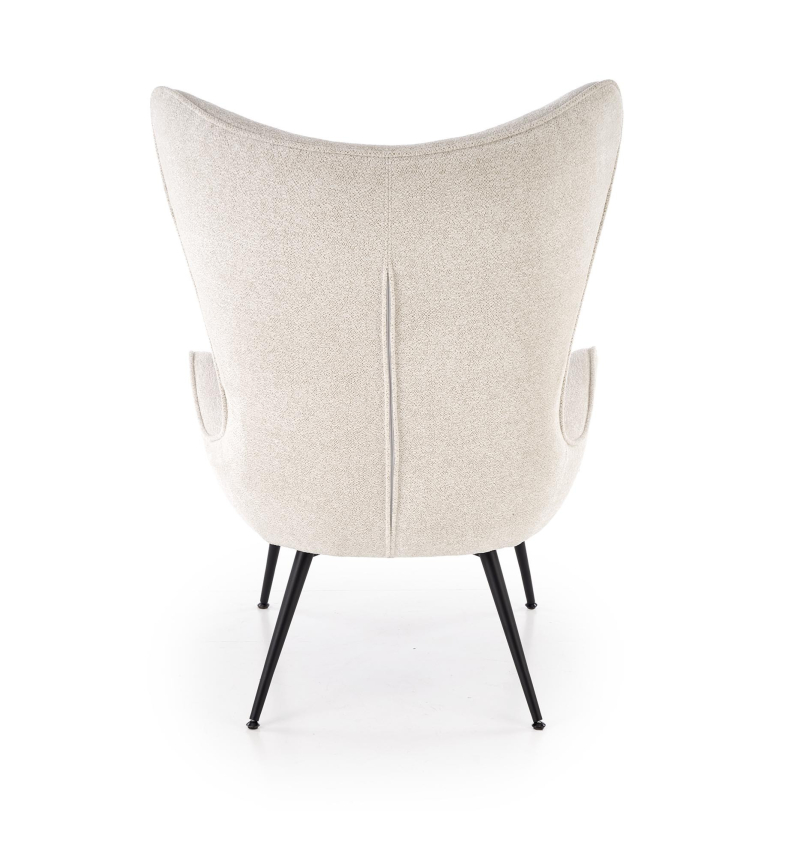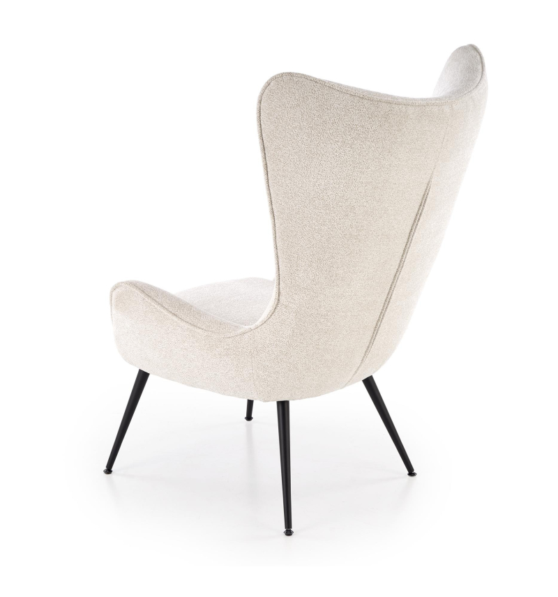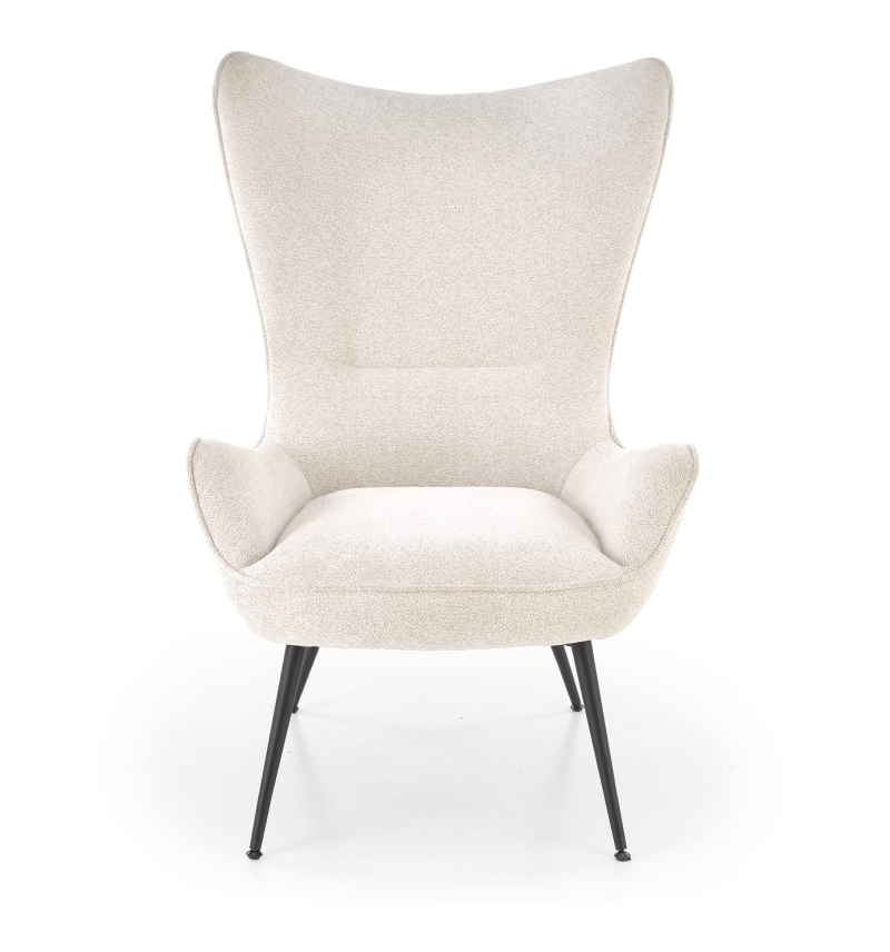 Fotel JUKON - Nowoczesna Elegancja i Komfortowy Wypoczynek z Wysokim Oparciem Odkryj fotel JUKON, który łączy w sobie nowoczesny design z wyjątkowym komfortem użytkowania. Jego wysokie, profilowane oparcie i eleganckie wykończenie sprawią, że stanie się on stylowym akcentem każdego wnętrza, od salonu po sypialnię czy gabinet. Wyrafinowany Design i Wysokiej Jakości Materiały Fotel JUKON charakteryzuje się smukłą sylwetką i wysokim, lekko odchylonym oparciem, zapewniającym doskonałe podparcie dla pleców i głowy. Tapicerowany jest miękką i przyjemną w dotyku tkaniną RAVEN w subtelnym, kremowym odcieniu (zgodnym z widocznym na zdjęciu). Tkanina ta jest nie tylko estetyczna, ale również trwała i łatwa w pielęgnacji. Stabilność i lekkość wizualną fotela zapewniają smukłe, skośne nogi wykonane ze stali malowanej proszkowo na kolor czarny. Kontrast między jasną tapicerką a ciemnymi nogami podkreśla nowoczesny charakter mebla. Wyjątkowy Komfort Użytkowania Ergonomicznie zaprojektowane oparcie, wygodne siedzisko oraz subtelne podłokietniki fotela JUKON gwarantują komfortowy wypoczynek. Idealnie sprawdzi się podczas relaksu z książką, oglądania ulubionego filmu czy jako stylowy element dekoracyjny. Cechy Produktu: -