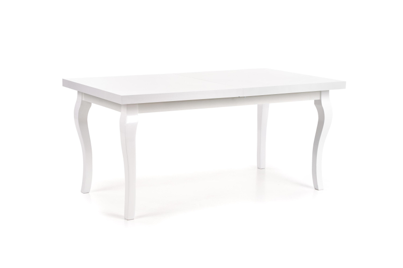 stół rozkładany, wymiary: 160-240/90/75 cm, materiał: blat - płyta MDF laminowana + obrzeża ABS, nogi - drewno lite (bukowe), kolor: biały