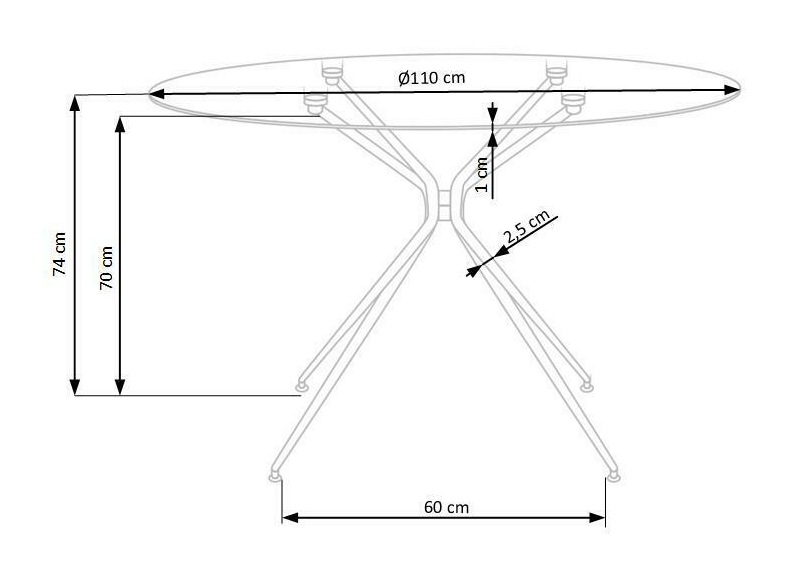 Idealny Kształt i Rozmiar: Okrągły blat o średnicy Ø110 cm sprzyja swobodnej komunikacji i buduje przytulną atmosferę. Jest idealny zarówno do codziennych posiłków, jak i eleganckich przyjęć, oferując komfortowe miejsce dla kilku osób. -