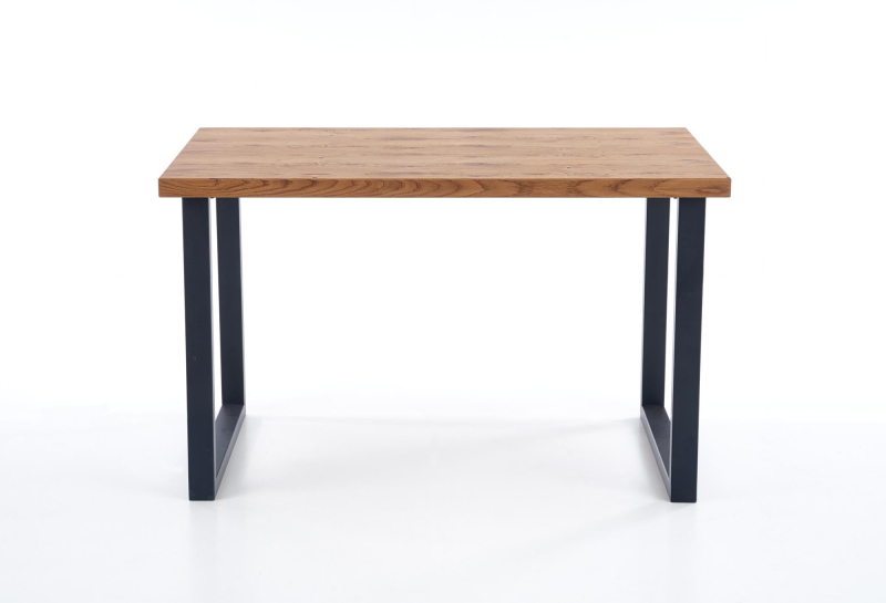 - Kolory: Blat w odcieniu jasnego dębu harmonizuje z czarnymi, stalowymi nogami malowanymi proszkowo, tworząc nowoczesny kontrast.