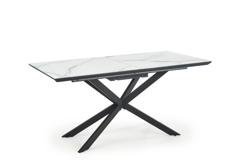 stół rozkładany, wymiary: 160-200/90/76 cm, materiał: ceramika / MDF lakierowany / stal malowana proszkowo, kolor: blat - biały marmur / ciemny popiel, nogi - czarny