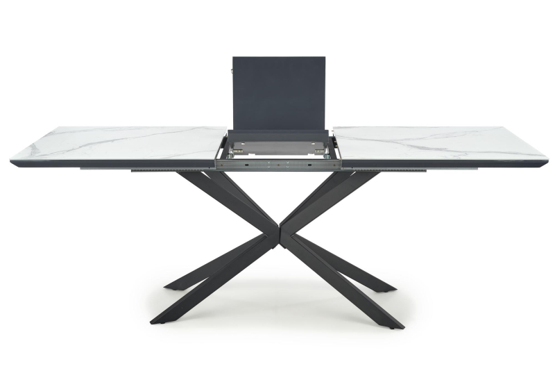 DIESEL stół rozkładany blat - biały marmur / c. popiel, nogi - czarny