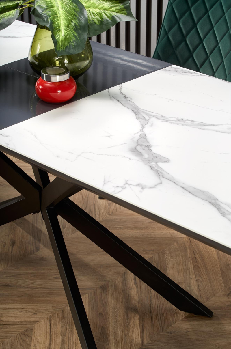 DIESEL stół rozkładany 160-200/90/76 cm,  blat - biały marmur / c. popiel, nogi - czarny