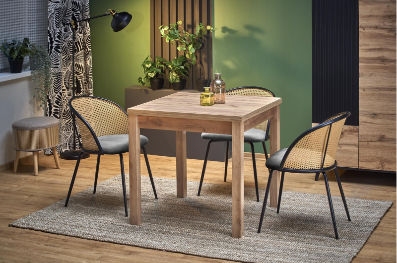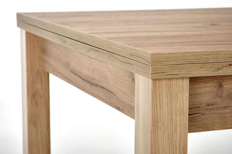 stół rozkładany, wymiary: 80÷160/80/76 cm, materiał: blat - płyta laminowana, na obrzeżach ABS, nogi – MDF laminowany, kolor: dąb craft