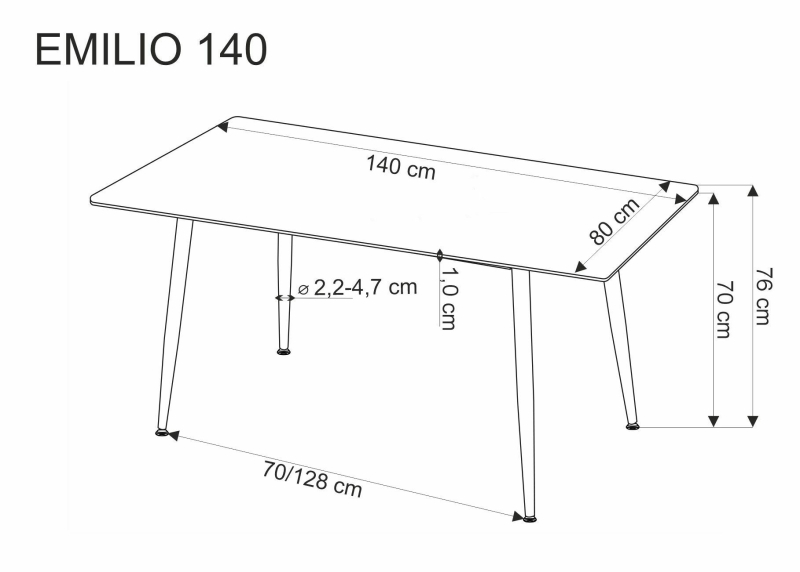 | Stół EMILIO 140 to elegancki i funkcjonalny element wyposażenia, który z pewnością podkreśli charakter Twojej przestrzeni, łącząc nowoczesność z klasycznym stylem. Jego efektowny blat w kolorze białego marmuru nie tylko przyciąga wzrok, ale również nadaje wnętrzu luksusowego wyrazu. Dzięki solidnej konstrukcji, idealnie sprawdzi się zarówno w codziennych, jak i formalnych okazjach. - Wymiary: 140 cm długości, 80 cm szerokości, 76 cm wysokości.