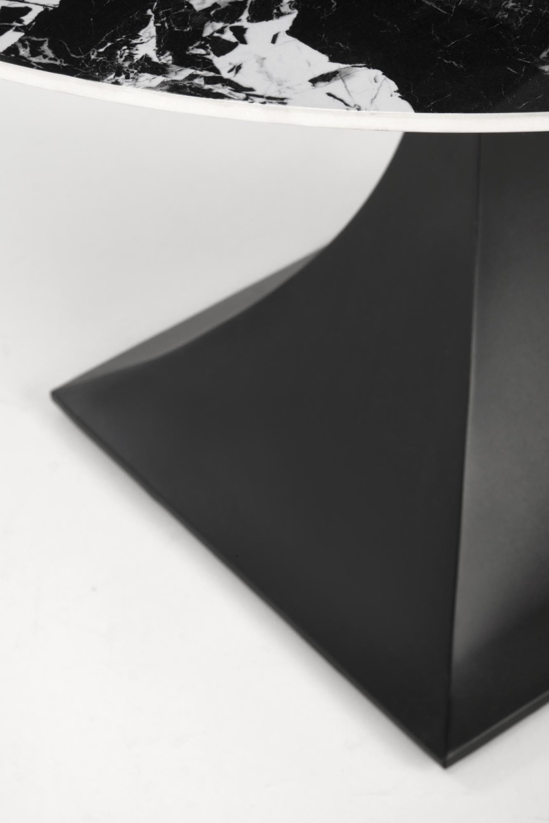 | Stół okrągły MANUEL to doskonałe połączenie elegancji i nowoczesności, które idealnie wpisuje się w różnorodne style aranżacji wnętrz. Zaletą tego mebla jest jego unikalny design, który przyciąga wzrok i dodaje charakteru każdemu pomieszczeniu. Blat w kolorze czarnego marmuru wprowadza luksusowy akcent, a stabilna noga z malowanej proszkowo stali gwarantuje trwałość i wytrzymałość. - Wymiary: 120 cm średnicy, 77 cm wysokości