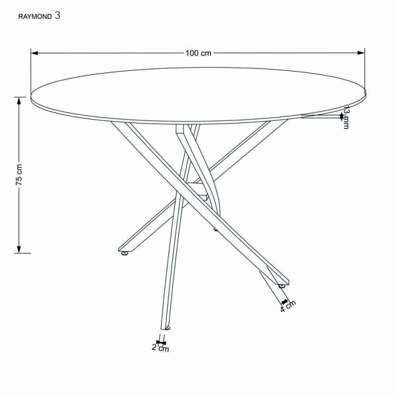 | Stół RAYMOND 3 to elegancki mebel, który doskonale wpisuje się w nowoczesne aranżacje wnętrz. Jego symetryczny design i użycie wysokiej jakości materiałów sprawiają, że przyciąga wzrok i staje się centralnym punktem każdego pomieszczenia. Idealny zarówno do jadalni, jak i salonu, jego wyjątkowa estetyka i funkcjonalność z pewnością spełnią oczekiwania nawet najbardziej wymagających użytkowników. - Wymiary: średnica 100 cm, wysokość 73 cm — idealny rozmiar dla 4 osób, umożliwiający komfortowe spożywanie posiłków.