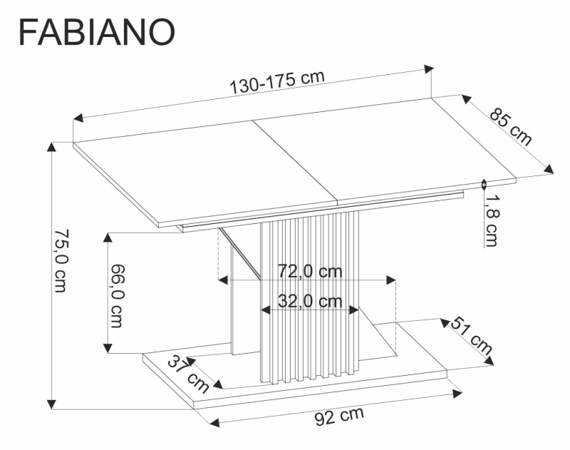 Dzięki rozkładanej konstrukcji stół FABIANO z łatwością dostosowuje się do Twoich potrzeb, co czyni go praktycznym dodatkiem do kuchni lub jadalni. Niezależnie od liczby gości, możesz w prosty sposób zwiększyć jego wymiary, zapewniając każdemu odpowiednią przestrzeń. - Gwarancja producenta: 24 miesiące, co zapewnia dodatkowy komfort i pewność zakupu.