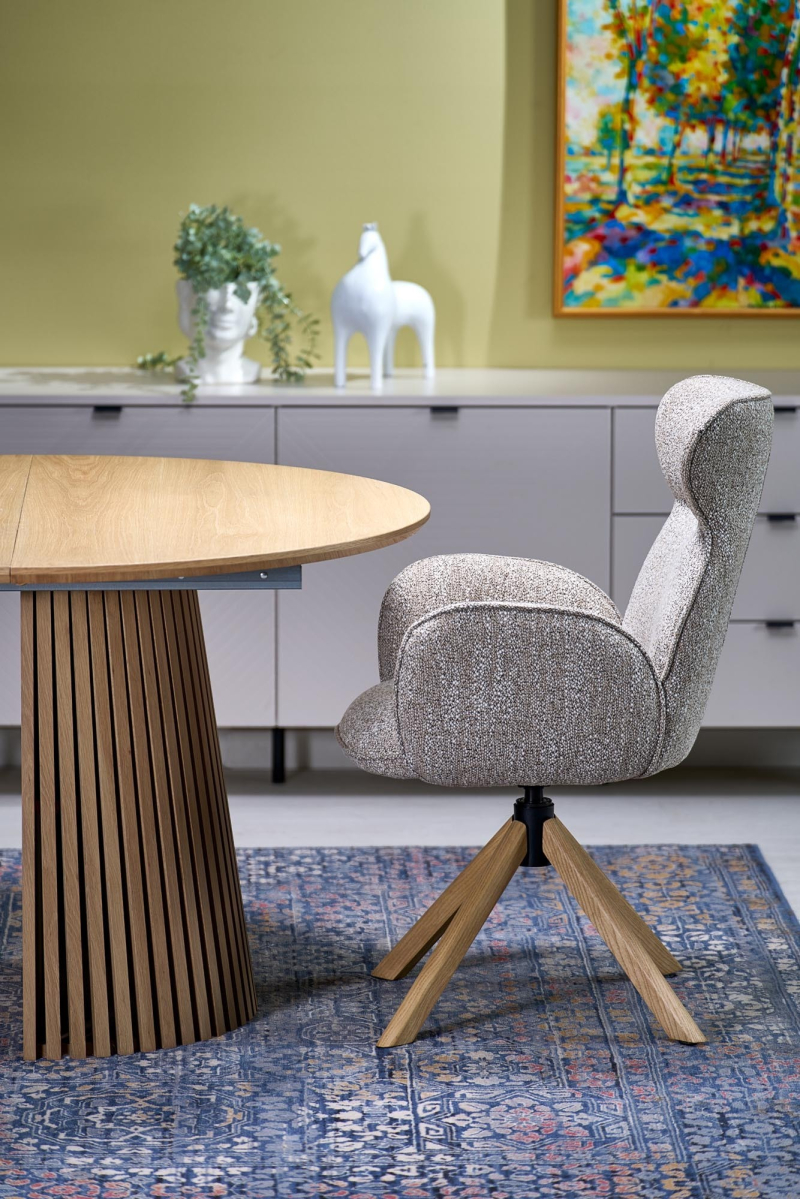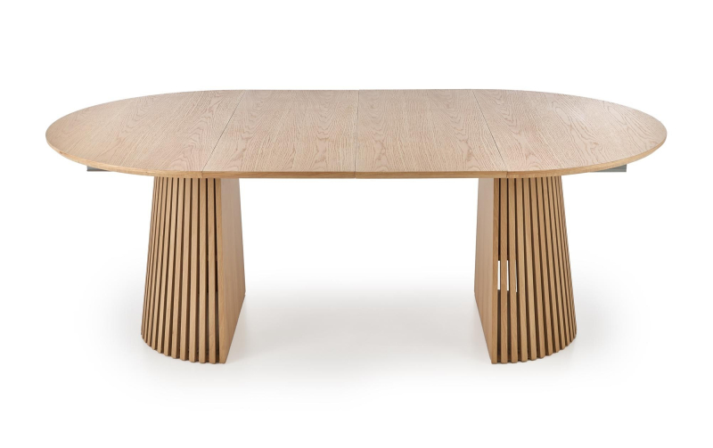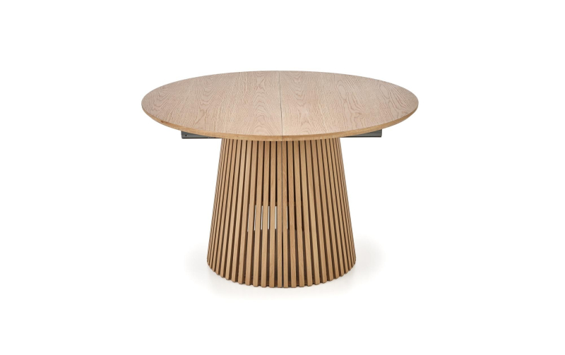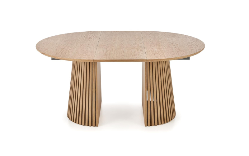 | Stół rozkładany FARGO to połączenie funkcjonalności z nowoczesnym stylem, idealny dla osób ceniących sobie zarówno estetykę, jak i praktyczność. Jego wymiary wynoszą 120-210 cm długości, 120 cm szerokości oraz 77 cm wysokości, co pozwala na dostosowanie go do różnorodnych potrzeb, od codziennych posiłków po większe uroczystości. Produkt został wykonany z wysokiej jakości materiałów, co gwarantuje trwałość i elegancki wygląd. Blat stołu wykonany z MDF z naturalną okleiną w kolorze naturalnym, w połączeniu z nogami, które również mają naturalny wykończenie, tworzy spójny i ciepły akcent w każdej przestrzeni. Szczegóły jego konstrukcji przyciągają wzrok, a unikalna forma dopasowuje się do różnych stylów aranżacji wnętrz. - Wymiary: 120-210/120/77 cm