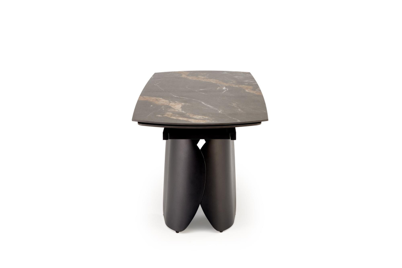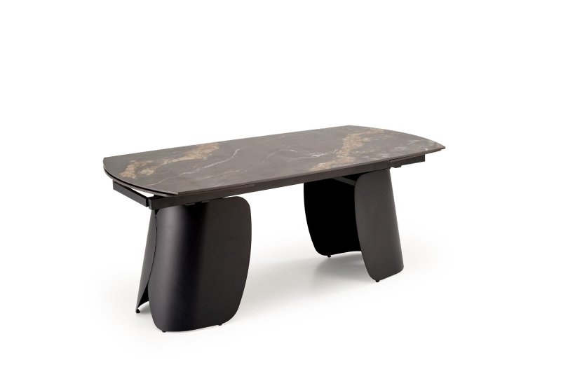 | Stół rozkładany FORUM to doskonałe połączenie elegancji i nowoczesności, które wprowadzi do Twojego wnętrza wyjątkowy styl. Jego czarny marmurowy blat przyciąga wzrok, dodając elegancji i klasy każdemu spotkaniu rodzinnemu czy przyjęciu. Dodatkowo, dzięki funkcji rozkładania, stół dostosowuje się do Twoich potrzeb, oferując pojemność od 180 do 260 cm długości, co sprawia, że jest idealny zarówno na kameralne kolacje, jak i większe spotkania towarzyskie. - Materiał: wysokiej jakości spiek ceramiczny, odporny na zarysowania, łatwy w utrzymaniu czystości