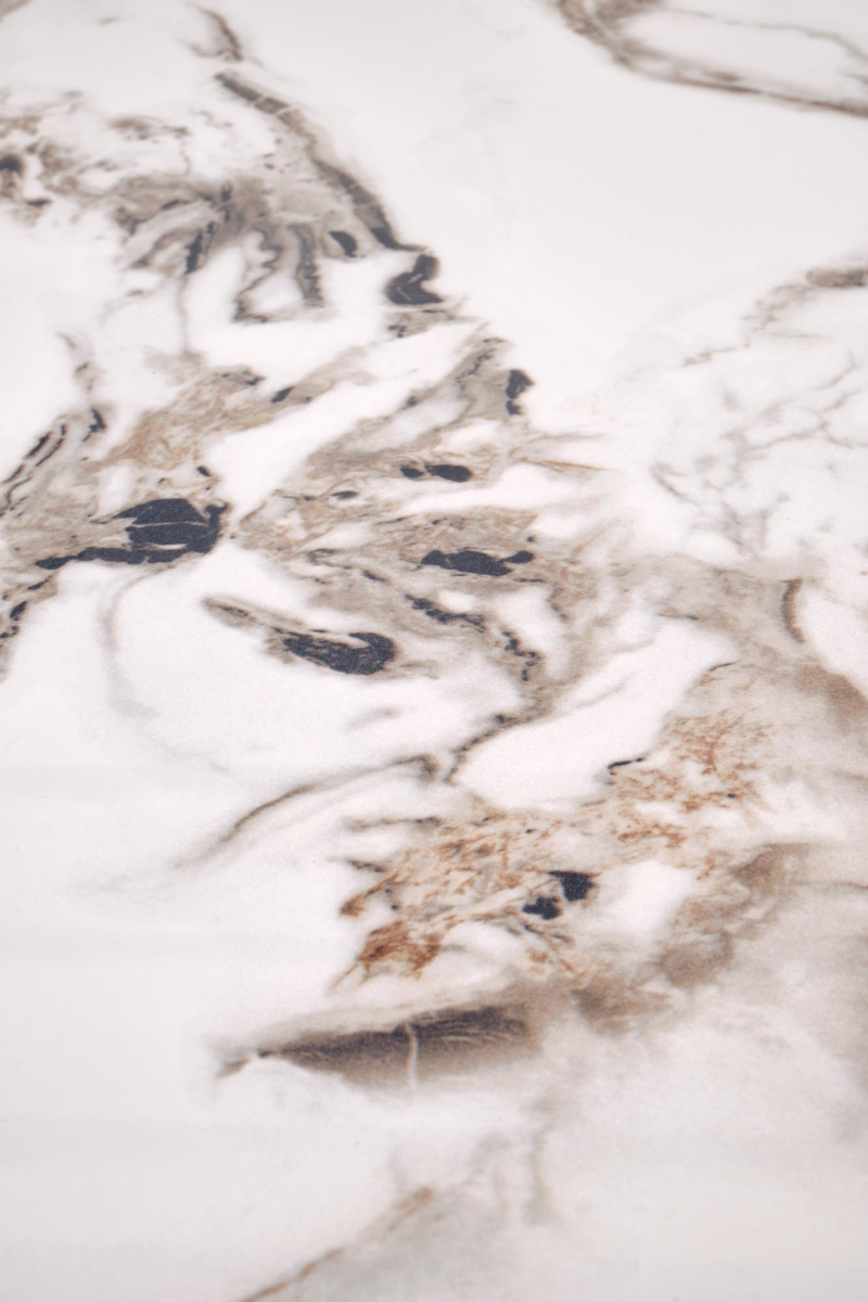 - Materiał: blat wykonany z eleganckiego spieku w kolorze białego marmuru, który wprowadza luksusowy akcent do wnętrza.