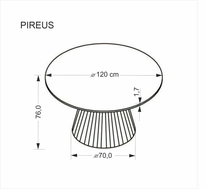 | Stół okrągły PIREUS to idealne połączenie elegancji i funkcjonalności, które z pewnością stanie się centralnym punktem każdego wnętrza. Jego unikalny design, bazujący na trwałych materiałach, doda klasy zarówno nowoczesnym, jak i tradycyjnym aranżacjom. Dzięki zastosowaniu lakierowanego marmuru i wyjątkowego MDF okleinowanego, stół wyróżnia się doskonałą jakością wykonania oraz estetyką. - Wymiary: średnica 120 cm, wysokość 76 cm, co zapewnia komfortowe użytkowanie dla 4-6 osób.