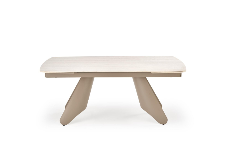 | Przedstawiamy elegancki i funkcjonalny stół SALIX, który stanie się centralnym punktem Twojej jadalni lub salonu. Dzięki możliwości rozkładania blatu, idealnie sprawdzi się zarówno podczas codziennych posiłków, jak i większych spotkań z rodziną i przyjaciółmi. Stół SALIX charakteryzuje się imponującym blatem wykonanym z trwałego spieku o subtelnym wykończeniu w kolorze trawertynu. Ten materiał nie tylko pięknie się prezentuje, imitując naturalny kamień, ale również jest odporny na zarysowania i łatwy w utrzymaniu czystości. Solidne nogi stołu wykonane są z malowanej proszkowo stali w eleganckim kolorze kaszmir, co zapewnia stabilność i nowoczesny wygląd. Geometryczna forma nóg dodaje stołowi unikalnego charakteru. Funkcjonalność stołu SALIX podkreśla rozkładany blat, który w razie potrzeby można powiększyć z 180 cm do 260 cm długości. Szerokość stołu wynosi 90 cm, a wysokość 76 cm, co zapewnia komfortowe użytkowanie. Informacje dodatkowe: - Wymiary: 180-260/90/76 cm (długość przed/po rozłożeniu / szerokość / wysokość) (wymiary podane z dokładnością +/- 1-2%)